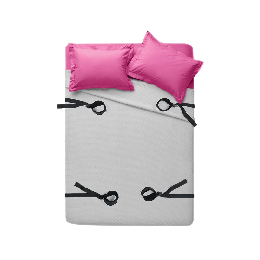 Transform your bedroom to a b0nd@ge playground in minutes with this sultry restr@int system that delivers endless possibilities for pleasure. Slide the adjustable straps under any size mattress and position the soft cuffs anywhere you desire—try the head and foot of the bed for a sexy, stretched-out position or the sides of the bed for a tempting, spread out pose.
