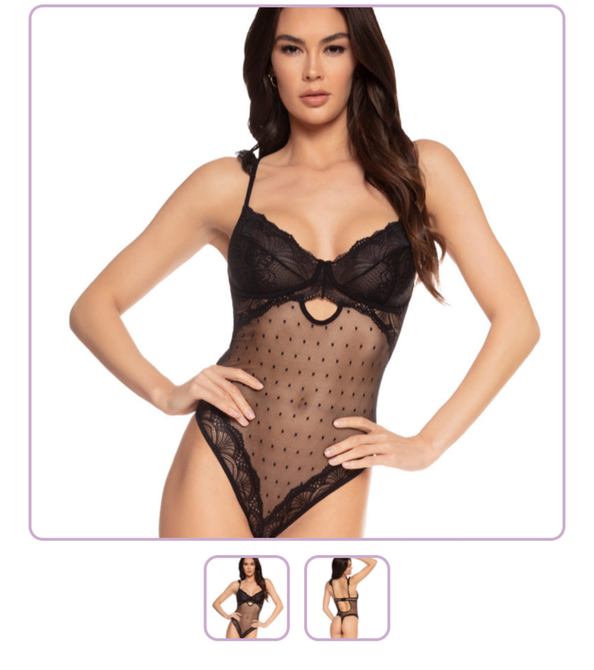 - Swiss dot mesh and lace teddy in seductive black color.